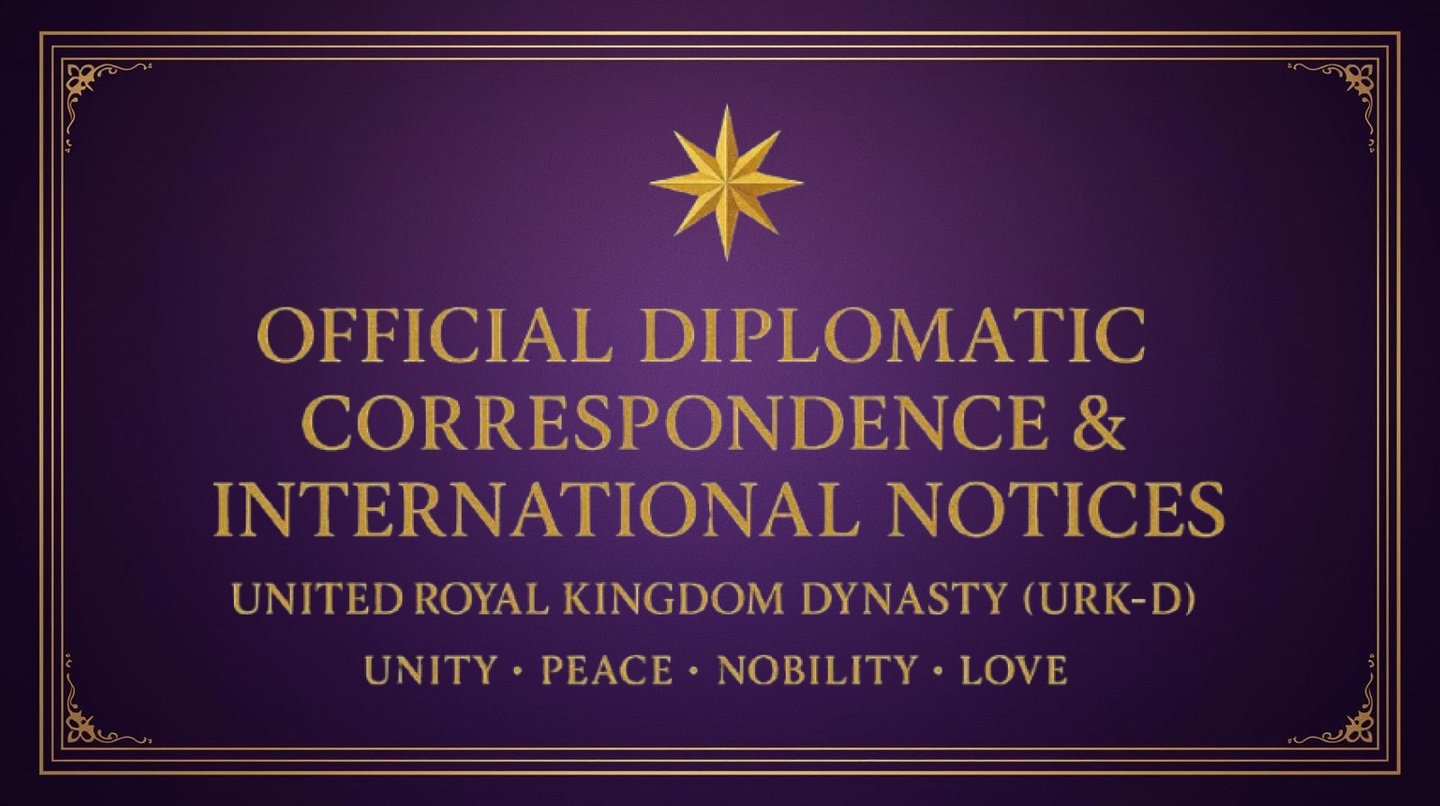 These published communications represent only the beginning of the United Royal Kingdom Dynasty’s diplomatic outreach. As further formal notices, treaties, recognitions, acknowledgements, and cooperative agreements are issued, they will be documented here for transparency, archival integrity, and future reference.